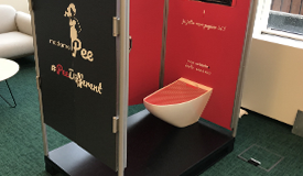 La première toilette urinoir.e féminine, pour réduire les files d'attente aux toilettes pour les femmes