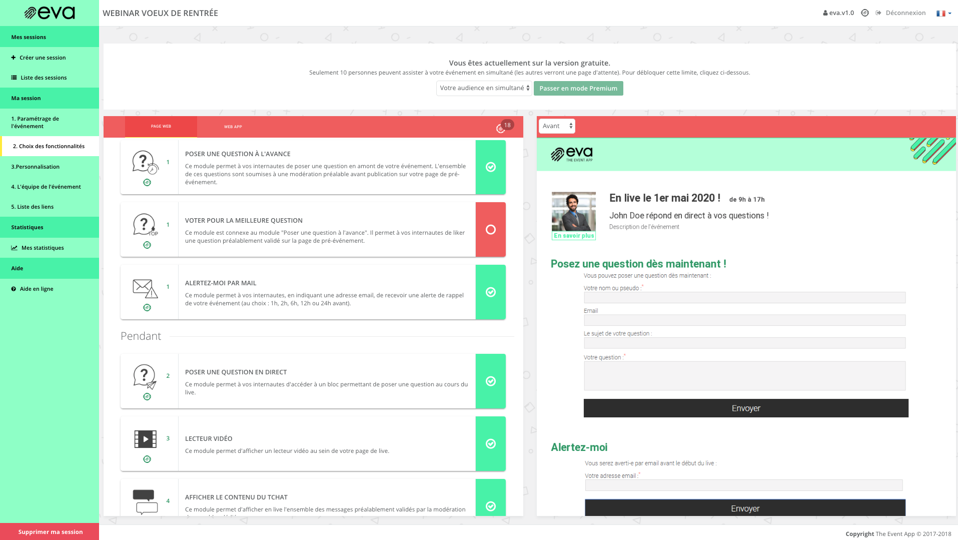 EVA est l'outil autonome, tout-en-un, pour tous les événements interactifs web ou présentiels, avec un support et une facturation à la carte